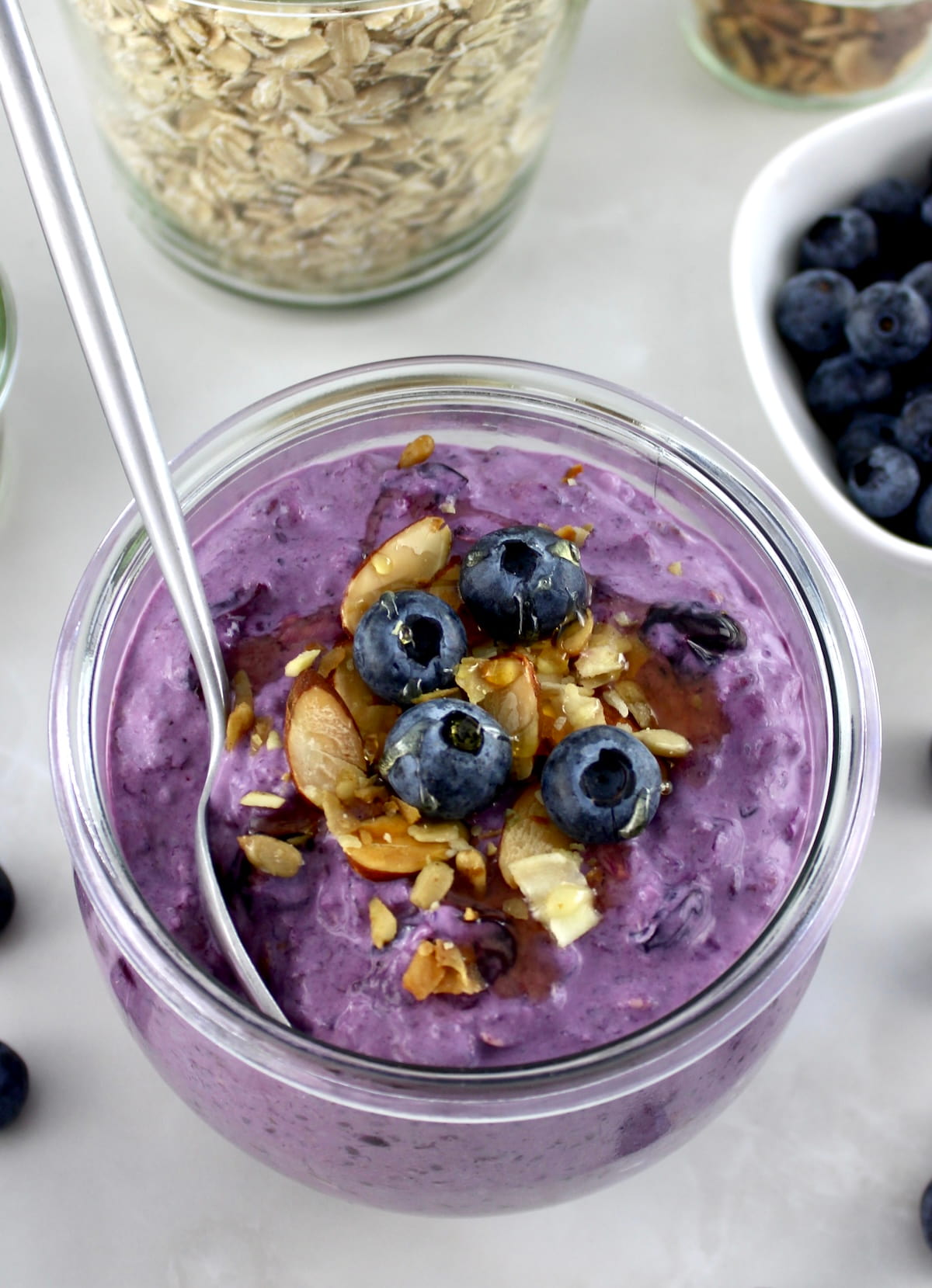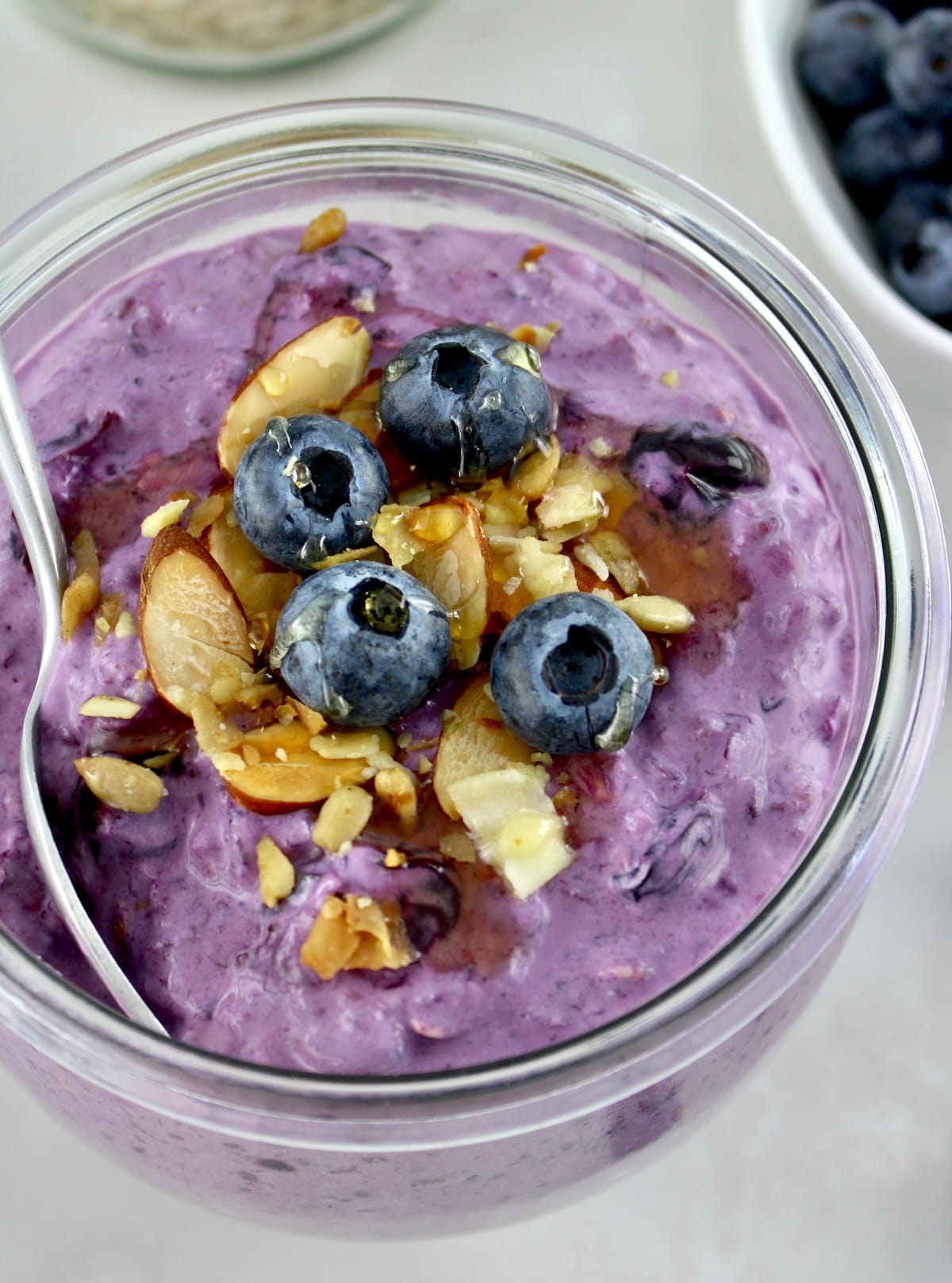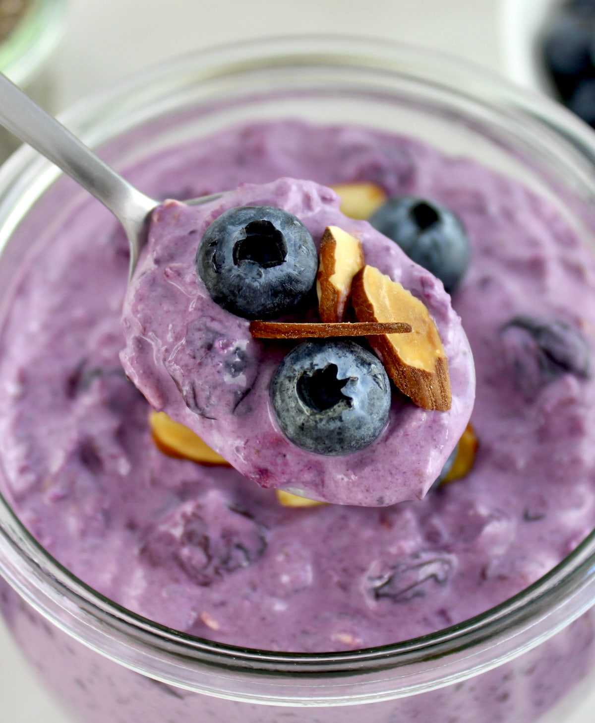 These easy Blueberry Overnight Oats are creamy, fruity, and the dreamiest way to wake up to breakfast. Juicy blueberries, silky coconut milk, and tangy yogurt come together in a chilled, spoonable, guilt-free and totally irresistible treat.