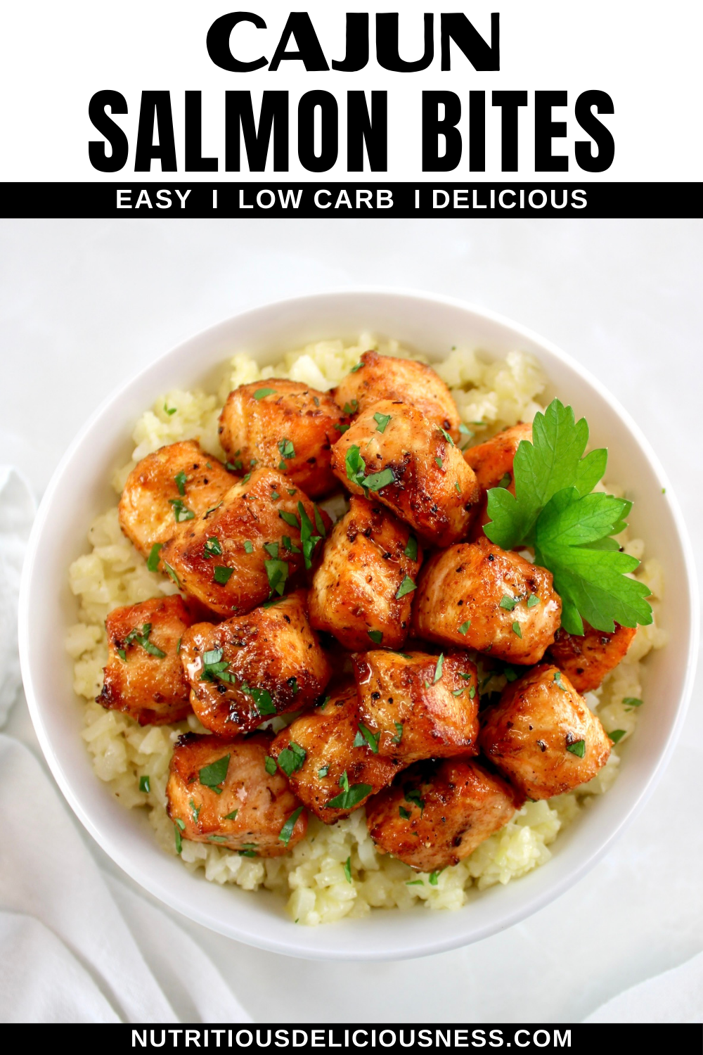 I’ve made salmon a lot of different ways, but these Cajun Salmon Bites might be my favorite way yet. The pieces cook fast, the seasoning grabs onto every side, and you get these buttery little bites of tender salmon. The idea for the Cajun flavor came from the love of this Cajun Salmon Alfredo and Cajun Shrimp Skewers, and it’s just as delicious here.