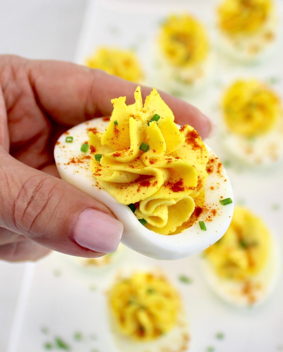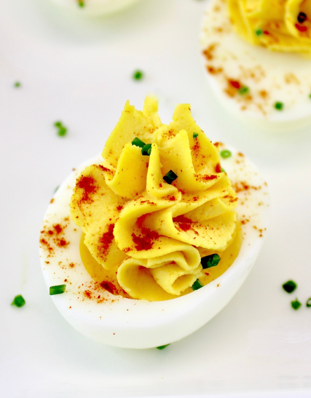 - You can serve as is or sprinkle smoked paprika and chopped chives over the tops.