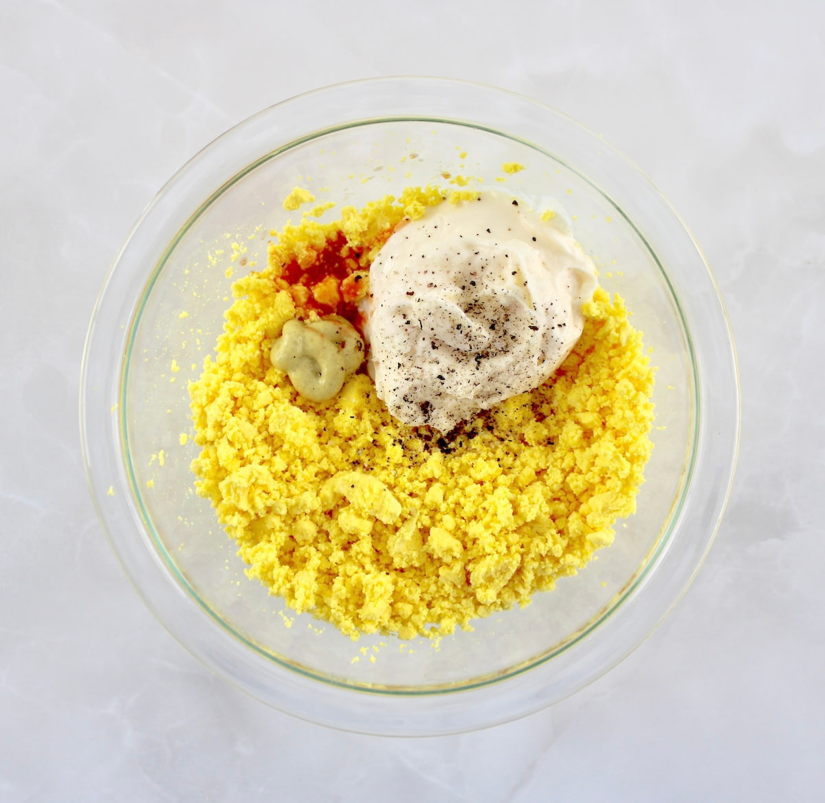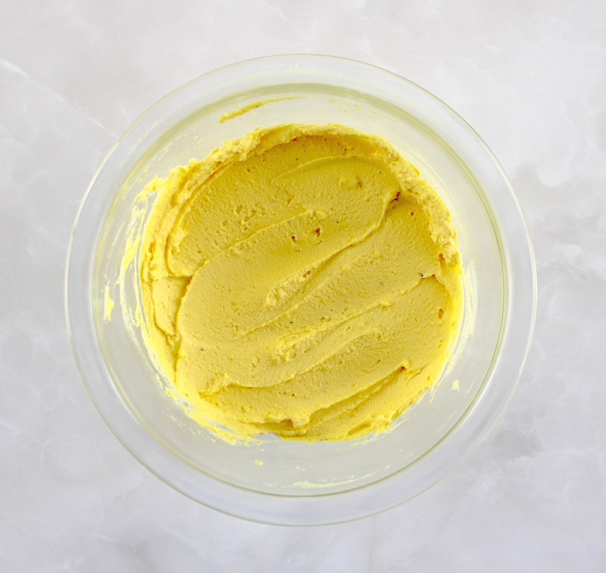 Mix yolks thoroughly before adding the rest of the ingredients, and use a fork or mixer while the yolks are still warm for best texture.