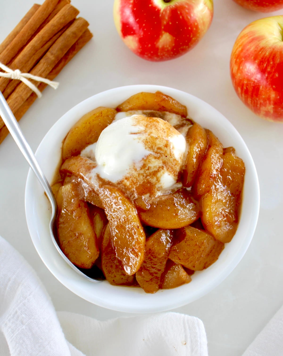 If you're looking for a quick and easy dessert that takes just minutes to make, you're going to love these apples! They're made using a handful of ingredients and could not be easier to cook up.