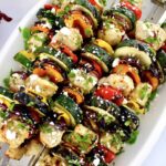 - Brush the reserved marinade from the veggies over the tops of the skewers and sprinkle with the feta cheese and chopped fresh mint, then serve.