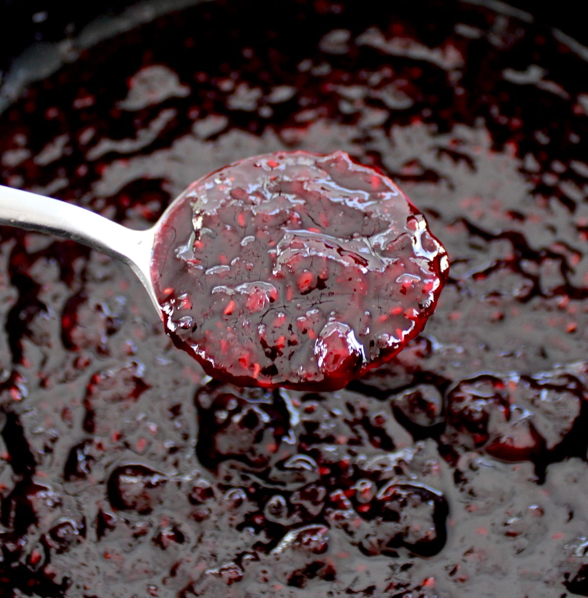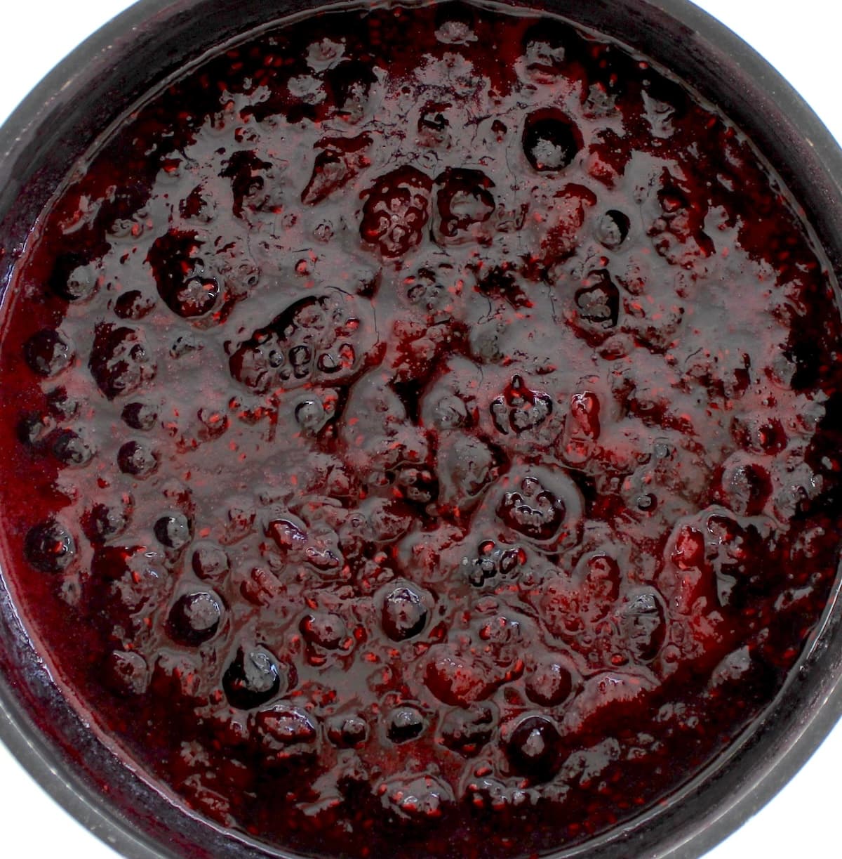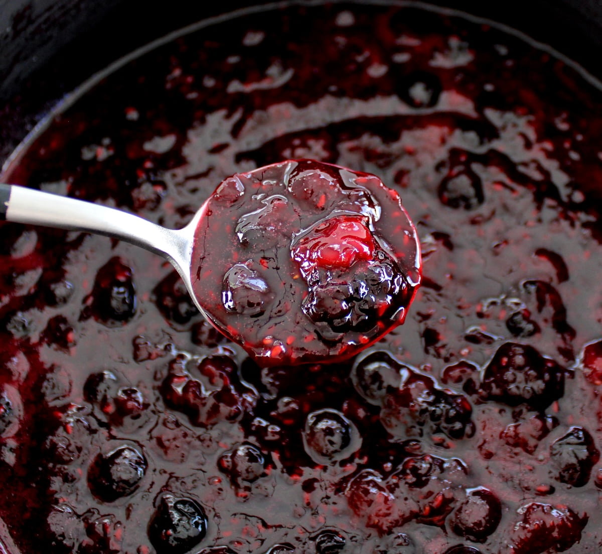 Simmer on low for 18-20 minutes, stirring often, or until the berries have broken down and the juices have thickened.