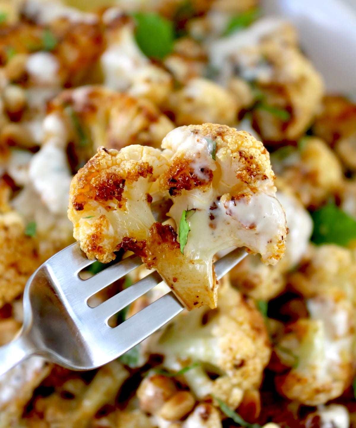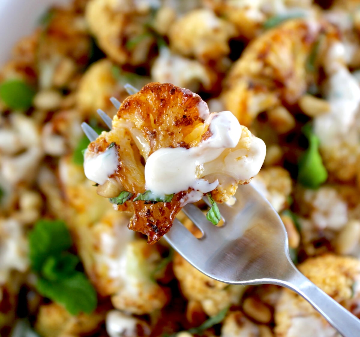 Add in some toasted pine nuts and a drizzle of my new favorite dressing, and you've just turned ordinary cauliflower into something special. The chopped fresh mint really is the perfect finishing touch. In fact I tend to use it often in Mediterranean-style dishes.