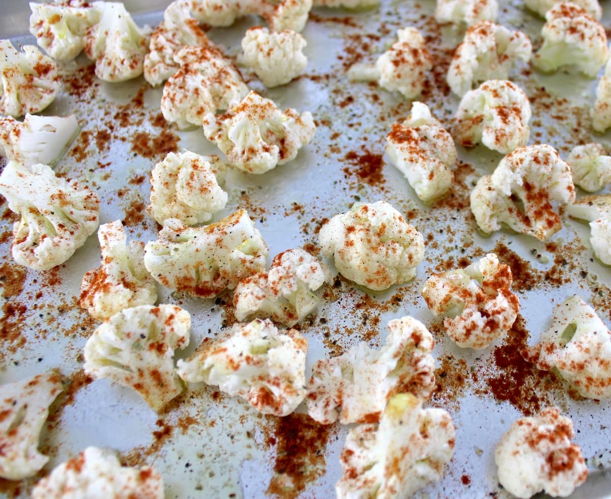 - If you find it easier to toss the cauliflower, olive oil and spices in a bowl first, by all means, you do you! I find it’s just as easy to toss using my hands right on the baking sheet and that’s one less bowl that I have to wash!