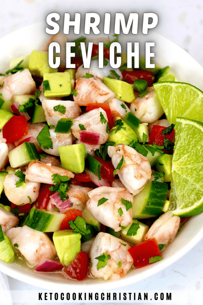Ceviche is perfectly acceptable on Keto. Shrimp are a great low carb source of protein and the veggies that are used in this recipe are all high in fiber and low in net carbs.