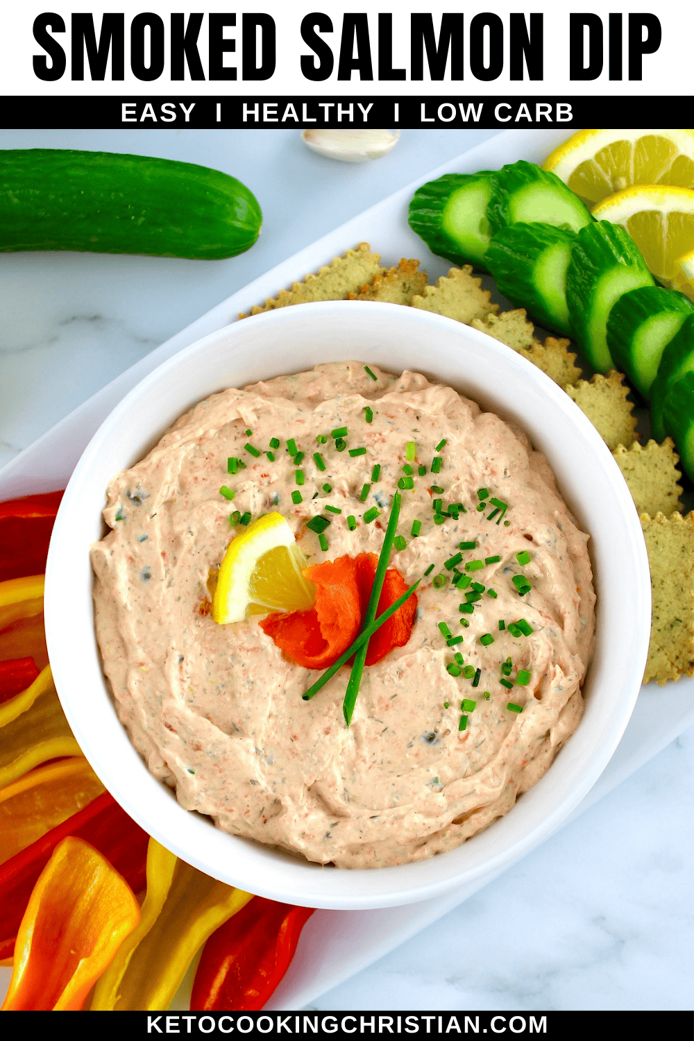 This cool and creamy Smoked Salmon Dip combines tangy cream cheese and zesty lemon with the savory richness of smoked salmon. It's the perfect pairing for your favorite low-carb crackers, chips, or fresh veggies.
